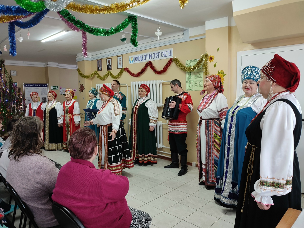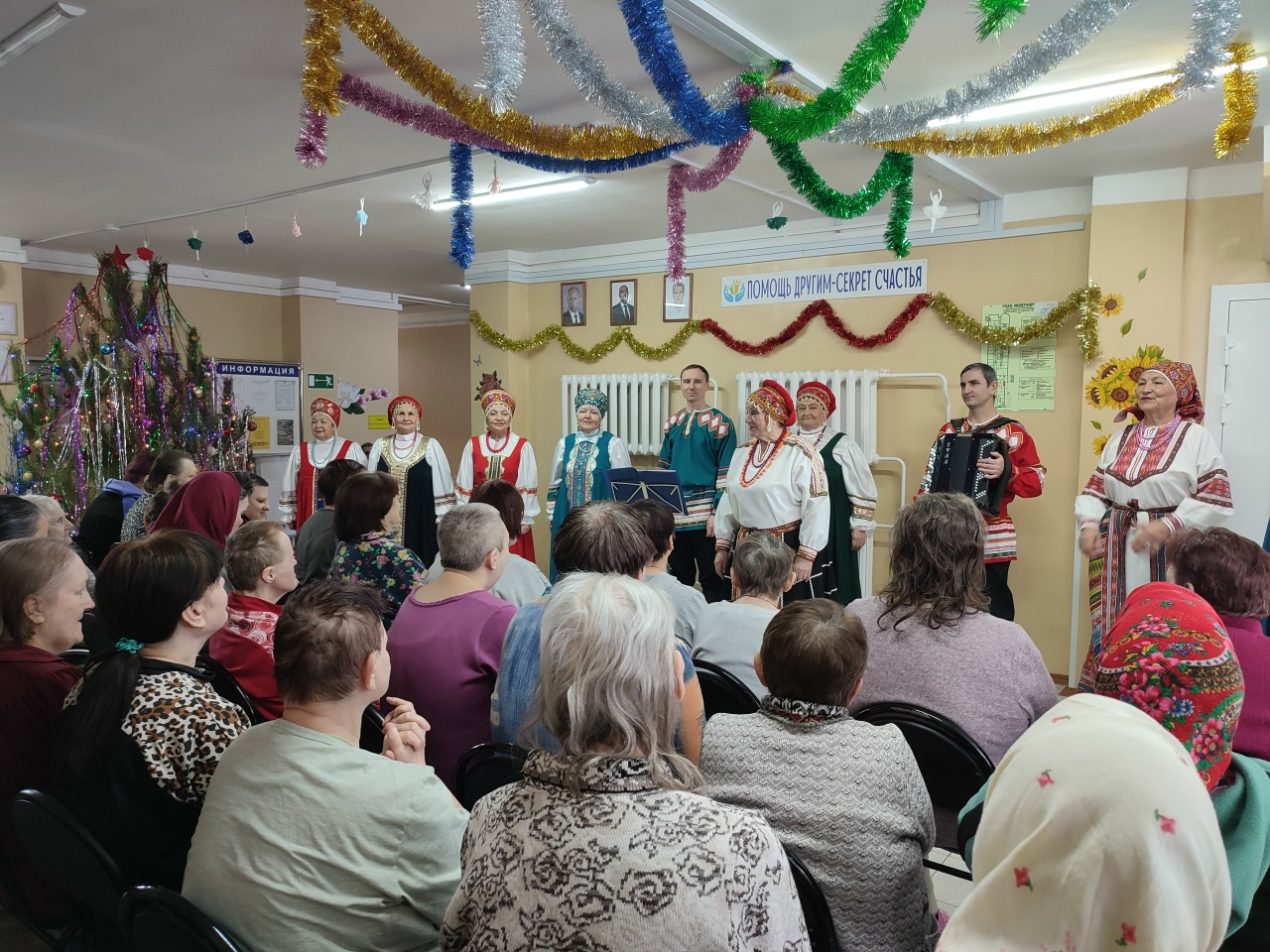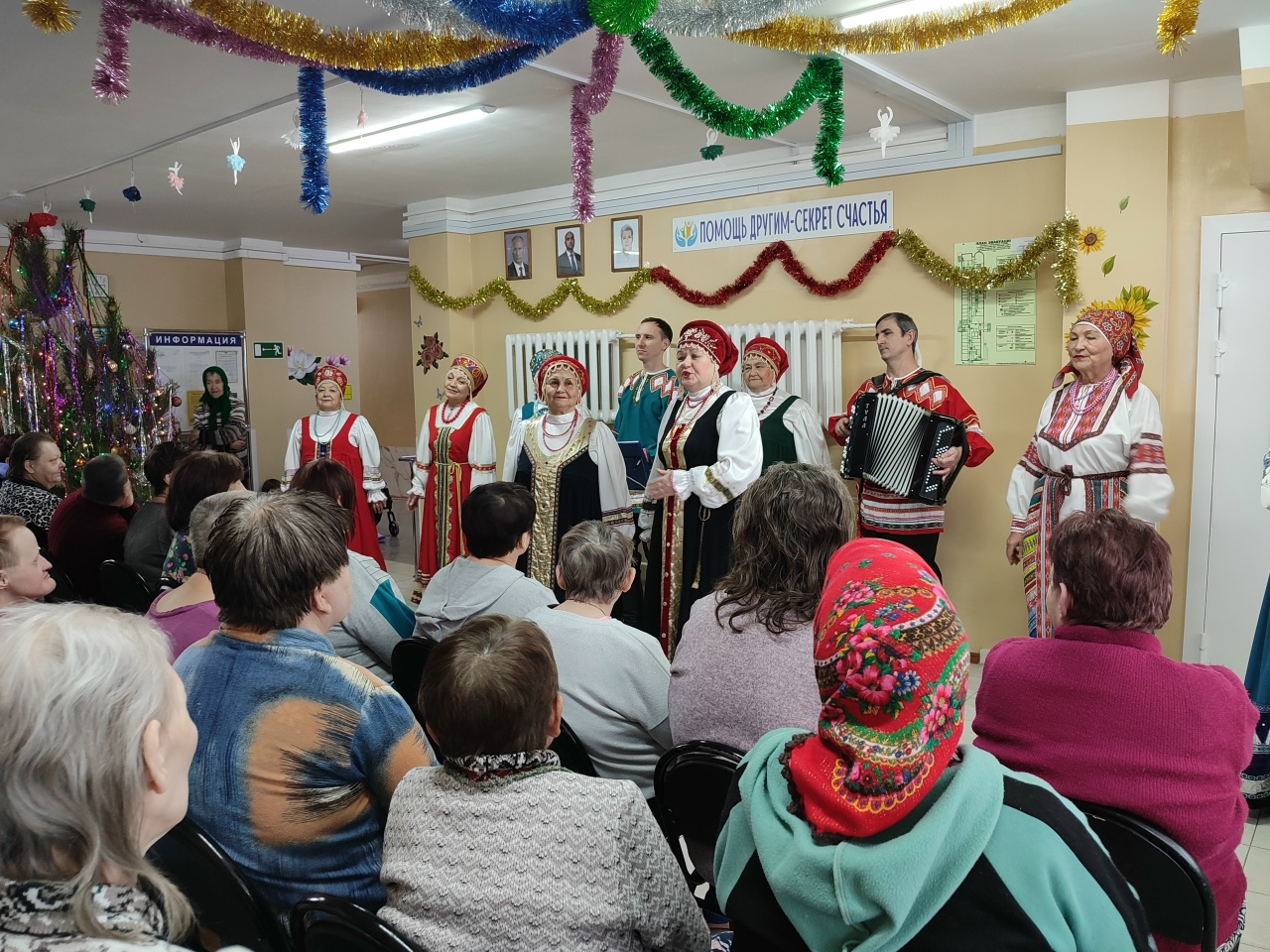 23 декабря народный хор «Исаклинские россыпи» приехал в АНО «Патронаж и забота», чтобы подарить получателям социальных услуг незабываемый концерт. Этот визит стал настоящим праздником для всех проживающих, ведь они очень любят встречать гостей и проводить время в атмосфере радости и творчества. Артисты хора, одетые в яркие костюмы, исполнили много песен, которые тронули сердца слушателей. Они пели о России, о родном Самарском крае, о зиме и о любви. Каждая песня звучала как мелодия души, наполняя зал теплом и светом. Зрители не могли удержаться от аплодисментов, подпевали любимым мелодиям и благодарили артистов за их талант и искренность. Ведущая Т.П. Цыкова умело вела программу, создавая теплую и дружескую атмосферу. Она устанавливала контакт со зрителями, рассказывая интересные истории о каждом номере и поддерживая участников хора. Благодаря ее профессионализму концерт стал еще более душевным и запоминающимся. Особенно трогательными были песни о любви и родном крае. Они напомнили проживающим о близких людях, о родных местах и о том, как важно ценить каждый момент жизни. Многие зрители не могли сдержать слез, ведь такие выступления редко случаются в их жизни. В конце концерта хор исполнил финальную песню о России, которая объединила всех присутствующих. После выступления участники хора и ведущая тепло поблагодарили проживающих за внимание. В ответ зрители выразили искреннюю признательность за прекрасный новогодний подарок и отметили, что такие встречи дарят им не только радость, но и надежду на лучшее будущее. | |